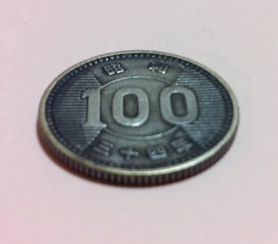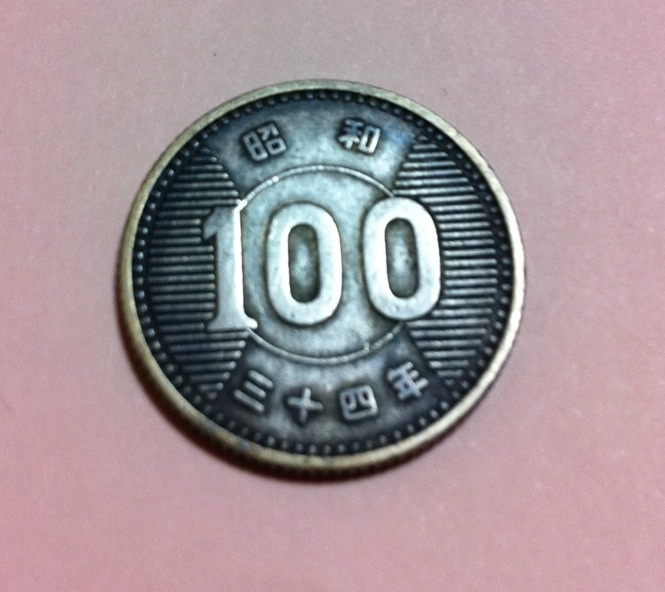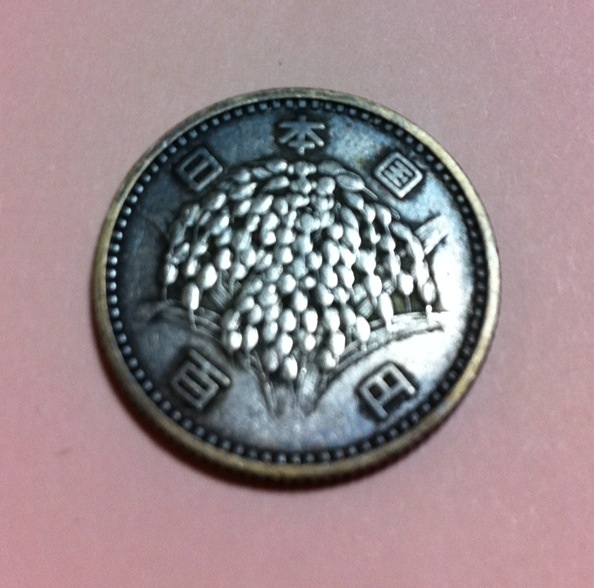 この硬貨は、昭和34から発行開始された稲穂の100円銀貨だ。